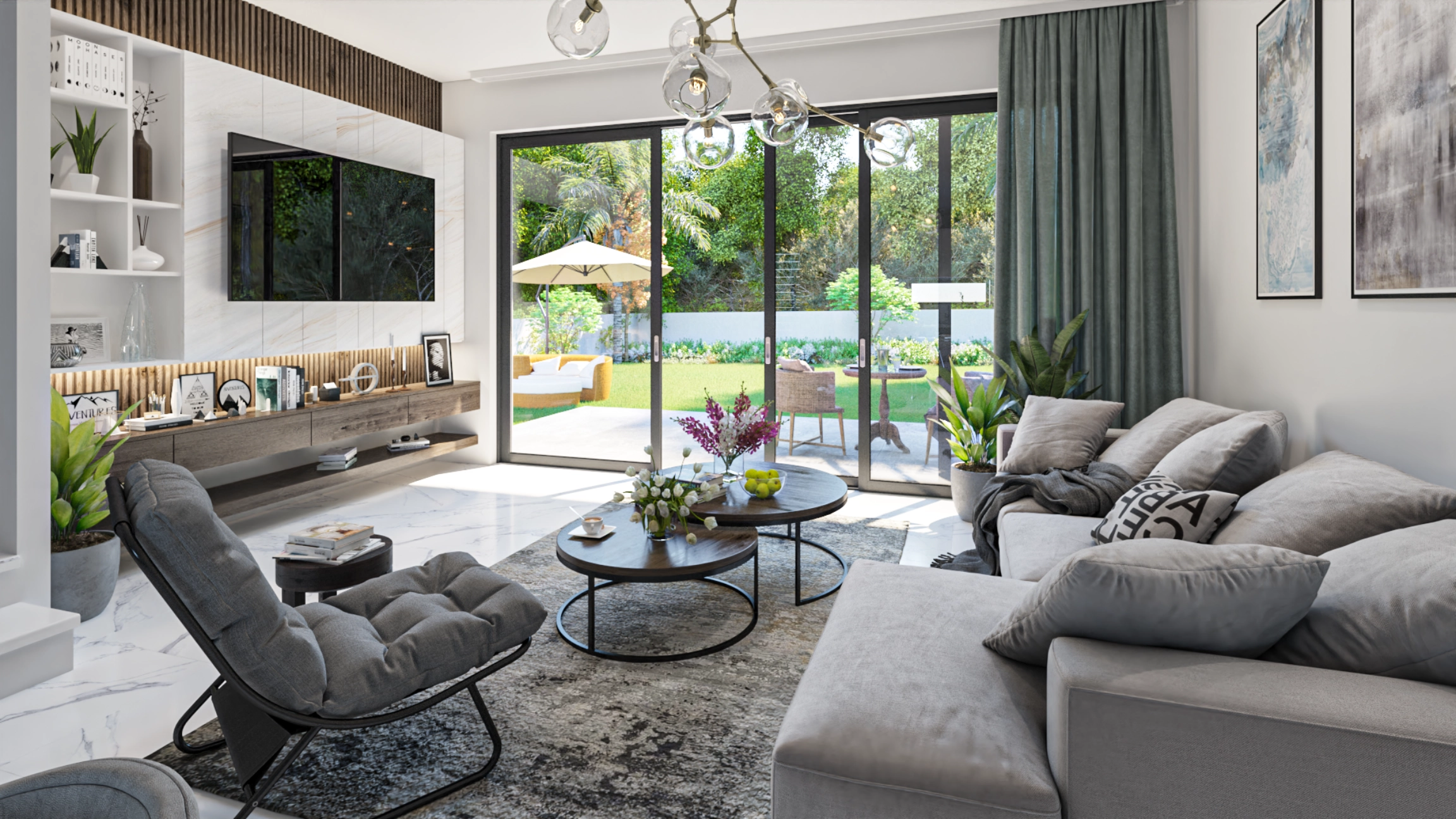 Landscaped garden and terraces for alfresco dining and relaxation