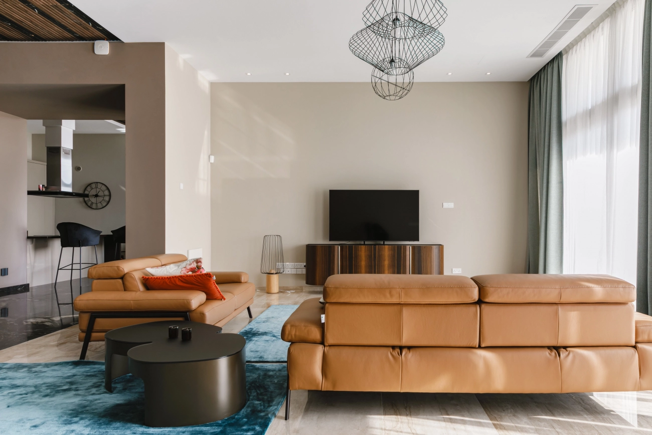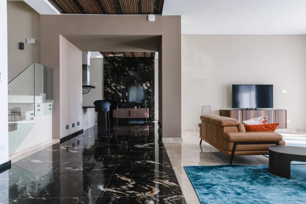 The villa boasts a contemporary design, meticulously crafted with attention to every detail. As you step inside, you will be greeted by a spacious and elegantly decorated living area, creating an inviting atmosphere for relaxation and entertainment. The living area seamlessly connects to a stylish dining area, ideal for hosting gatherings with family and friends.