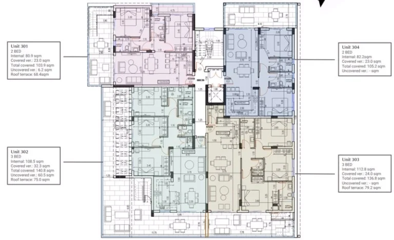 Three Bedroom Penthouse Apartment For Sale in Larnaca Town Centre – Title Deeds (New Build Process) A collection of 14 contemporary one, two and three bedroom apartments perfectly designed for modern city living. Located in a prime location, with easy access to the highways to other cities, the Metropolis Mall, and entertainment, This is the perfect place to call home for those seeking the ultimate in quality and convenience. All the apartments have ample, comfortable interior spaces and spacious balconies. European ceramic tiles in bathrooms and living areas, high end kitchen cabinets and wardrobes are part of the extensive list of features the development offers. - Master bedroom with ensuite and fitted wardrobes - 2 Bedrooms with fitted wardrobes - Open plan living – dining and kitchen area - Family bathroom - Guest W/C - Unfurnished - Provisions for air conditioning - Double glazing - Security entrance doors and intercom system - Roof garden - Parking - Storage - Internal area 108-112 m2 - Covered veranda 24-32 m2 - Uncovered veranda 0-60 m2 - Roof garden 75-79 m2 - Communal Fees TBC - Close to local shops and amenities - 3 Minutes to the Metropolis Mall - 12 Minutes to the Sea & Beach - 15 Minutes to Larnaca International Airport - Suitable for Cyprus Permanent Residency – Fast Track - Subject to VAT - Energy Efficiency TBC Larnaca Larnaca is the home of Cyprus’ main International Airport, close to the Salt Lake area, a place where you can watch Swan’s and Flamingo’s that live in the lake. On its coastal seafront, the cafes and restaurants are peaceful. On the edge of Larnaca Bay the palm-lined seafront of Larnaca town bustles with cafes, tavernas, shops and bars. Historic charm is lent to the scene by its fortress castle, now used as the town’s summer cultural centre. Larnaca is an excellent base from which to get to know the central and eastern section of Cyprus, and its proximity to the International Airport and a number of luxury hotels that have been developed along its beautiful sandy beaches make this a popular holiday choice. Larnaca is the modern gateway to Cyprus, known for such sights as the beautiful St. Lazarus Church and leisurely Palm Tree Promenade. ———— * Title Deeds (New Build Process) * Penthouse with Roof Garden * Short Drive to the Sea & Beach * Suitable for Cyprus Permanent Residency – Fast Track * Subject to VAT * Off Plan – Completion Due July 2026 * Energy Efficiency TBC Larnaca Town Centre Larnaca Town Centre County: Larnaca Sale Type: For Sale Ref #: INT003N3P