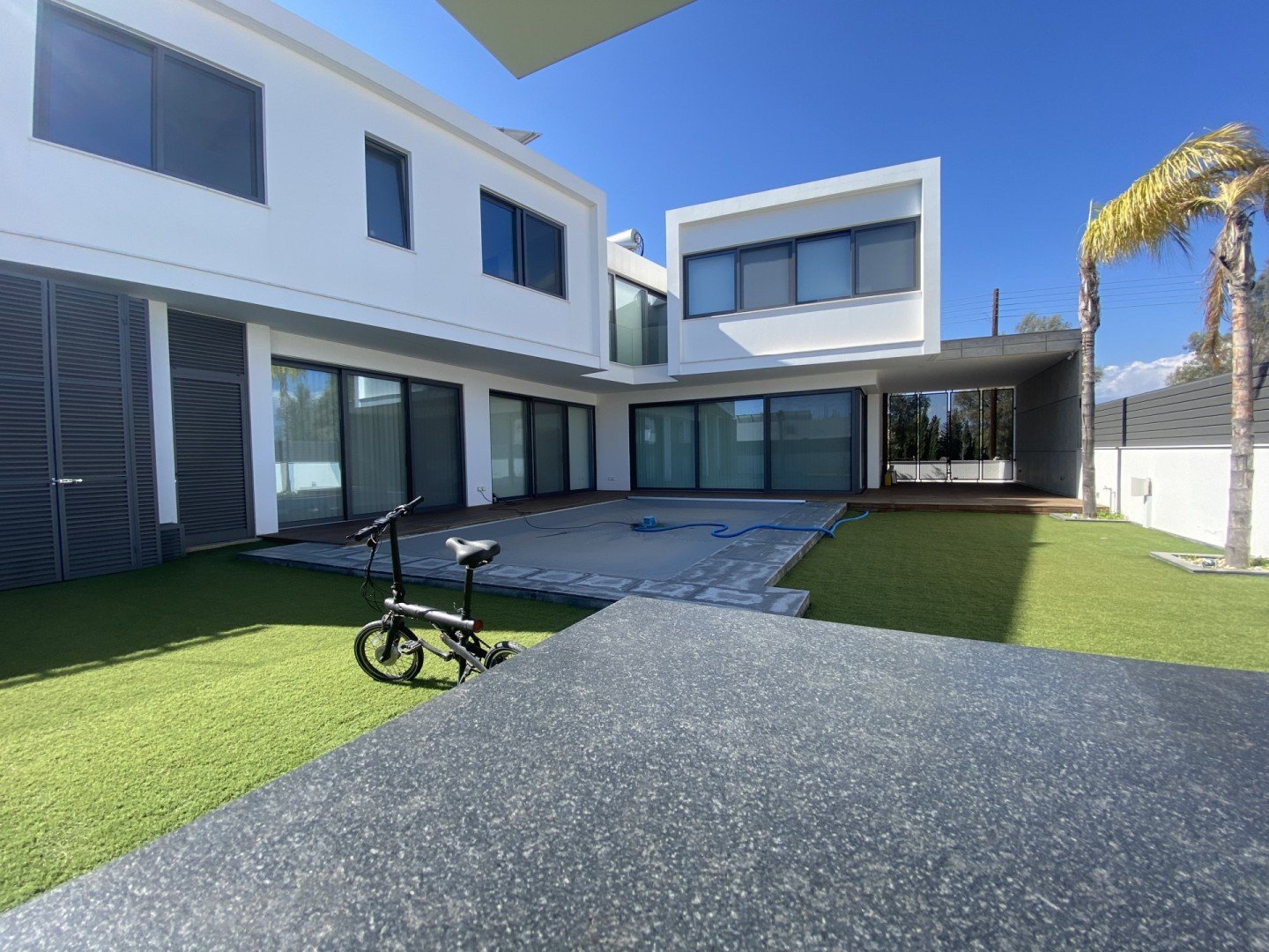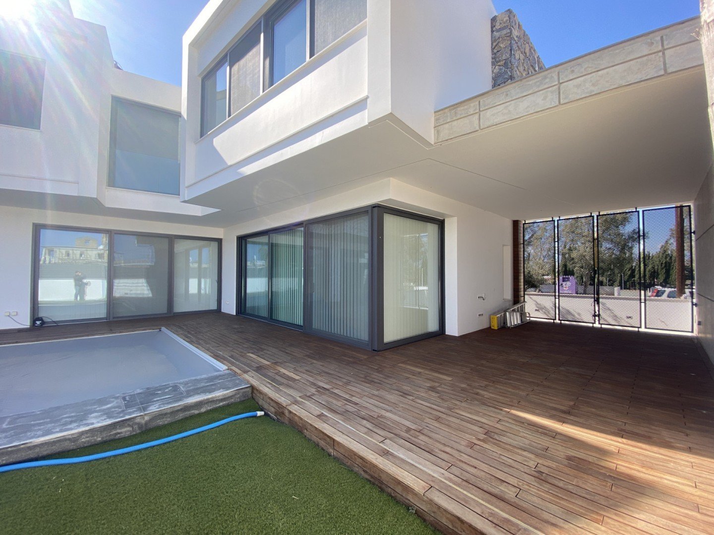 This stunning house is located in Trachoni village and is a 10 minute drive to Limassol.The property has 3 large bedrooms with the master also featuring a private bathroom and walk in wardrobe. The ground floor has a large sitting room, a separate kitchen, dining room and guest toilet.Other features include VRV air- condition and central heating, photovoltaic and a laser security alarm system, panic room.The garden area has a private swimming pool, a large covered balcony and bbq area.There is also 2 covered parking spaces.