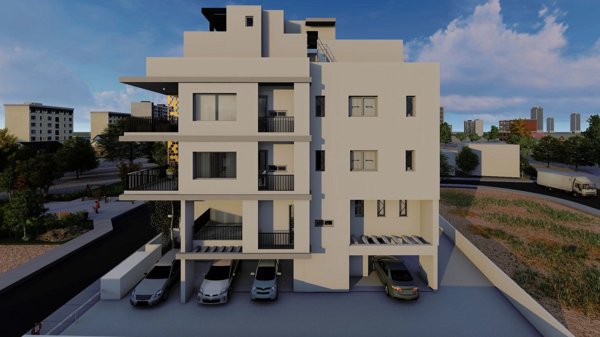 All the apartments owns a storage unit and a covered parking.