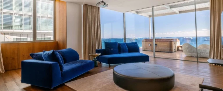 Reference ID: #SA33450Price details: €11,600,000Penthouse is located on the top two floors of one of the towers.It’s a “city within a city” complex with everything from a spa and a gym to concierge service.This is the best apartment overlooking the sea and Limassol downtown.Classic minimalism embedded in interior design: high ceilings, Italian parquet, solid wood designer furniture, modern furnishings from leading brands, marble floors, and smart home system.Penthouse net area: 540 sq.m.Penthouse veranda: 440 sq.m.Advanced round the clock control and services by a 5 star management company, handling all matters of maintenance, security and personalized services.Private underground parking with direct access to elevators.Direct access from the tower’s interior to a pedestrian bridge, leading straight to the beach