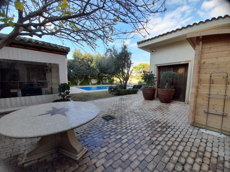 Outstanding five bedroom mansion available, near the Town Centre of Limassol. This incredible residence offers luxurious and impressive interiors like no other property in the area. There is a grand entrance upon entry and the ground level boasts three sitting areas, two dining areas, a huge guest WC, separate kitchen and the fifth bedroom with en-suite facilities. The first level has two bedrooms of which the grand master bedroom suite has a large bedroom area with adjoining sitting room leading to the extensive walk in wardrobe and spacious en-suite bathroom. Bedrooms three and four are located on the second level. All bedrooms have en-suite facilities. There is a generous outdoor entertaining area which can host up to 100 people, complete with bar area, private swimming pool, jacuzzi, sauna and large terrace. An additional building is utilized as a utility room, second kitchen and store room. The garage can accommodate three cars and the grounds a further six. There is central heating, VRV heating/cooling system, security alarm and CCTV. Easy access to Makarios Avenue, and the seafront is just 2kms away. All amenities are within close proximity. Please call for further information and a viewing of this magnificent residence.