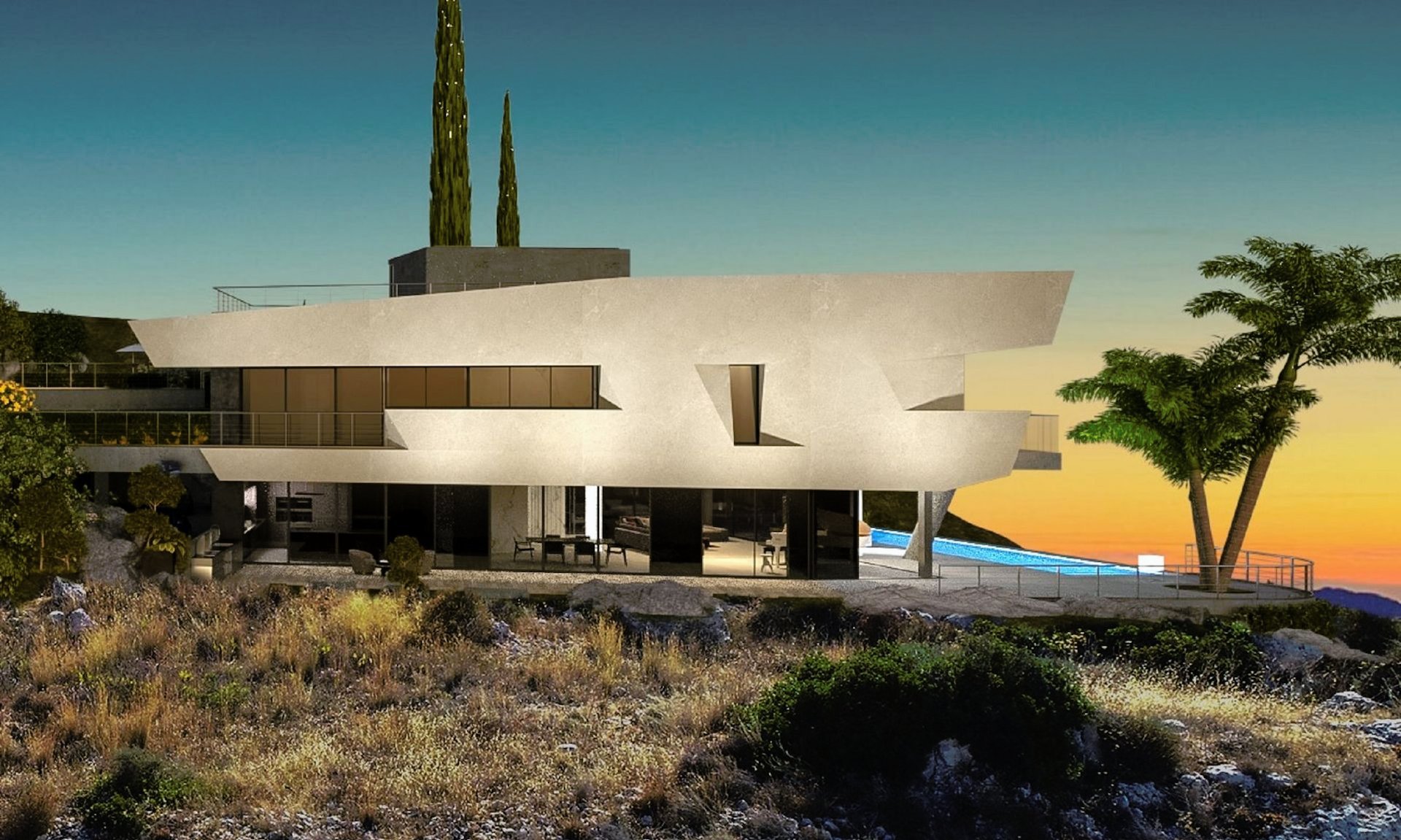 Combining modern architectural lines with premium finishes and luxurious natural materials, it provides an idyllic setting for serene Mediterranean living.