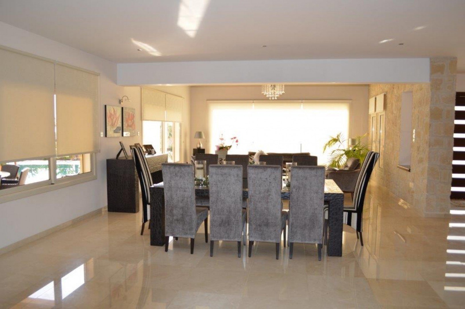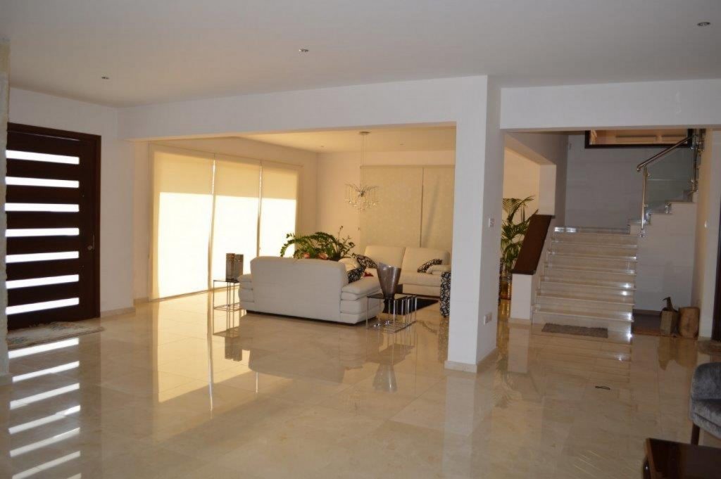 Stunning and unique luxurious residence available unfurnished in a quiet residential area of Agios Athanasios. Easy access to the highway and just five minutes to Foley's Private School. This exclusive property offers four floors of spacious stylish interiors which can be offered as a nine bedroom residence. Upon entry, there is huge formal sitting and dining area leading to the kitchen with a cosy family sitting area including fireplace, large guest WC and additional bedroom. A spacious room is located on a higher level which can be utilized as a bedroom, office, studio or play area. Four sizable bedrooms are located on the second floor of which two have en-suite bathroom and bedrooms three and four share a large family bathroom with Jacuzzi. The Master suite has a walk in wardrobe. There is also a laundry room and kitchenette on this level. A huge loft of around 100m2 which can be utilized as a bedroom or work area. The basement has a huge recreation area and three rooms, ample storage space, kitchen and two bathrooms. There is a lovely outdoor entertaining area with private swimming pool (sea water) and barbecue. Some sea view can be enjoyed from this residence.The main residence is around 400m2 plus loft, basement, garage and mezzanine.The property offers under floor heating, air conditioning units, solar panels, photovoltaic panels and a fireplace. This residence is also offered for rent. A Viewing is highly recommended for serious Buyers only. Please call for further information, additional photographs and a viewing.