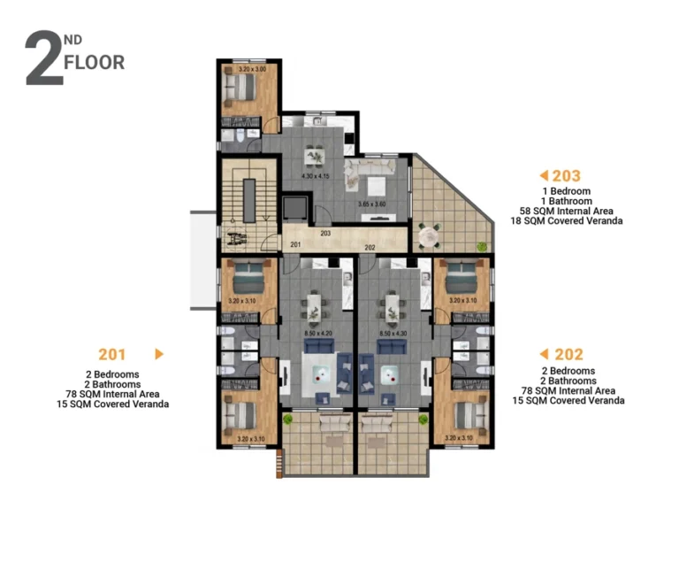Composed of 1, 2 & 3 bedroom apartments and strategically located at just 3 minutes from the highway and 6 minutes from the beach.