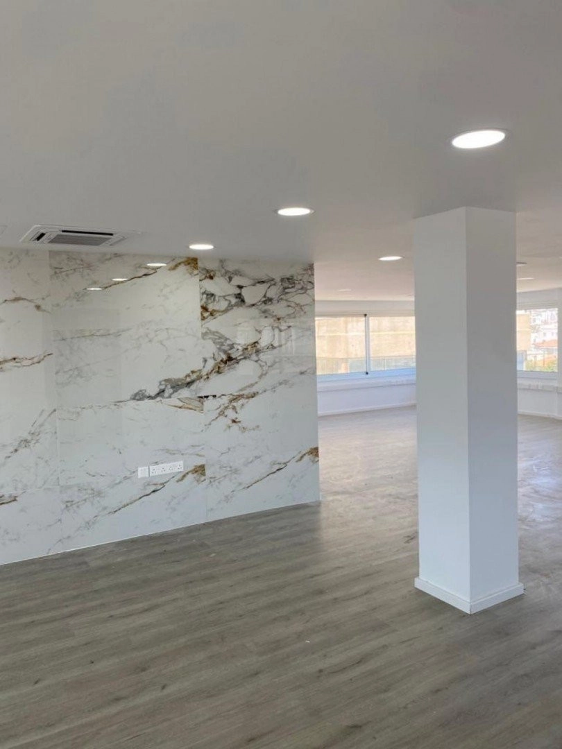 Office space available on one of Limassol's busiest intersections and within close proximity to the Town Centre. This fully renovated open plan office is located on the fourth floor of a commercial building. High quality interiors with structured cabling, heating/cooling units and two WC. Close to Makarios Avenue, five minutes to the Seafront road and easy access to the highway. The office space is currently rented to long-term tenants offering a 7.5% return on investment. Please call for further information and a viewing.