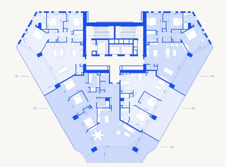 The luxurious three-bedroom sky homes in this iconic building showcase impeccable quality throughout. From the Italian-designed kitchens equipped with premium Miele appliances to the striking feature walls adorned with wood and stone, every detail has been thoughtfully curated. The spacious design includes a large covered veranda with direct sea-facing views, offering an unparalleled living experience.