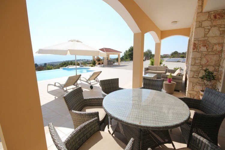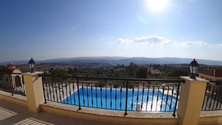 This very beautiful and luxurious fully furnished villa with stunning mountains view is located in Drinia, Paphos in a very quiet area with windy and dry climate. It is built with the finest materials in a very big plot 2992 sq.m. At the ground floor consists a 2 spacious living areas with 2 fire places , an open plan classy kitchen , a kitchenette , a study room and a quest wc with shower. At the 1st floor consists a living area that leads to a big balcony , 4 big bedrooms (the master room with en-suite facilities and Jacuzzi ) and a family bathroom . Very big swimming pool and outdoor bar with a barbecue under a pergola !Lot of fruit trees and flowers plus a small chapel decorating the garden . Photovoltaic that cover the bigger percentage of house electricity needs. The stone walls provide thermal isolation and give a great outlook to the house Well maintained and excellent condition!!Ideal for families that seek privacy and luxury !!!Price is negotiable !!!