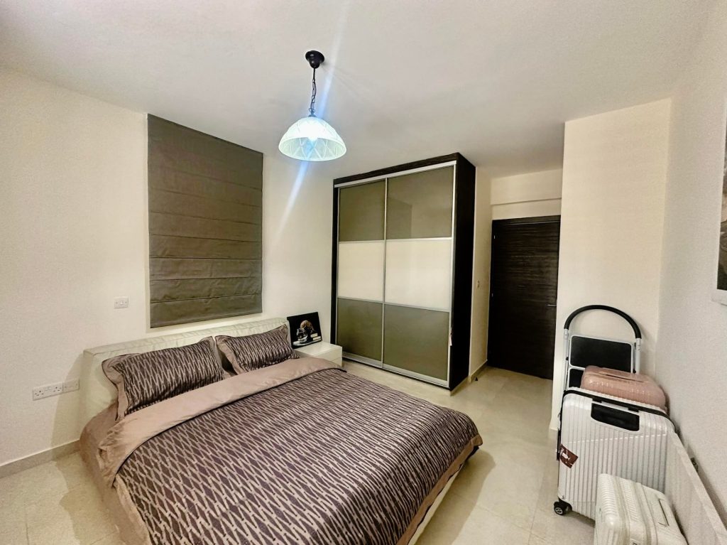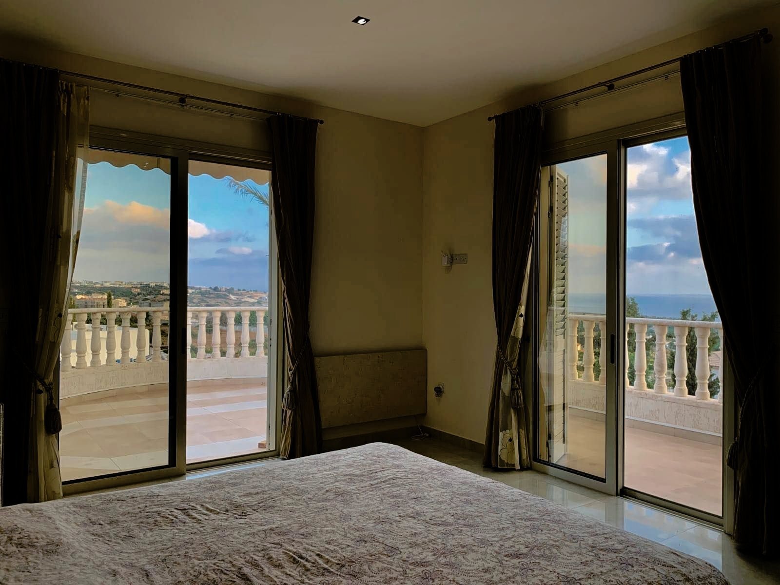 The master bedroom impresses with a spacious balcony, offering breathtaking sea views, perfect for enjoying Cyprus stunning coastal scenery.