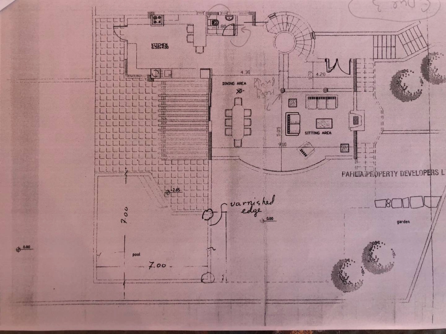 For sale 5 bedroom villa with stunning sea views. Impeccable style and the highest quality characterize every corner of the luxurious interiors of the villa, located on three levels. The kitchen equipment includes absolutely all necessary household appliances, including a refrigerator for wine. The second floor is reserved for three bedrooms, each with an en-suite bathroom, access to a shared balcony and, of course, with panoramic views of the coast. The lower floor offers an additional living room that can serve as a relaxation room. On the same level there is a utility room, two bedrooms and a bathroom. All rooms on this floor overlook the courtyard with a charming waterfall and garden. There is also a fenced sports ground where you can play basketball or tennis. A multi-level pool of 8 by 8 m is the accent of the main terrace on the middle level. A two-minute drive from the villa there is a school. Coral Bay Beach is only 5-10 minutes away.