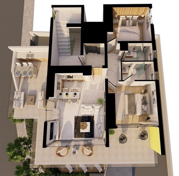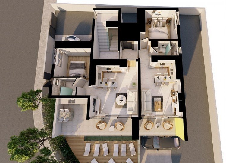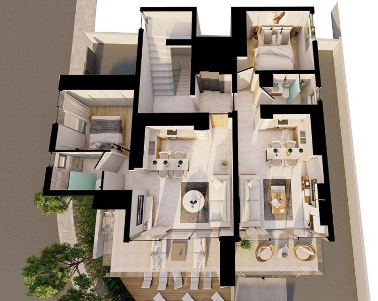 This modern 4 storey complex consists of 4 x 1 bedroom apartments and 2 x 2 bedroom apartments, and is situated in a prime location close to the Paphos tourist.area.The project is walking distance to the sea, harbor and shopping mall. Each apartment has high quality finishes and the penthouse apartment includes an exclusive roof garden with stunning sea views.There is a shared swimming pool and bbq area on ground floor.