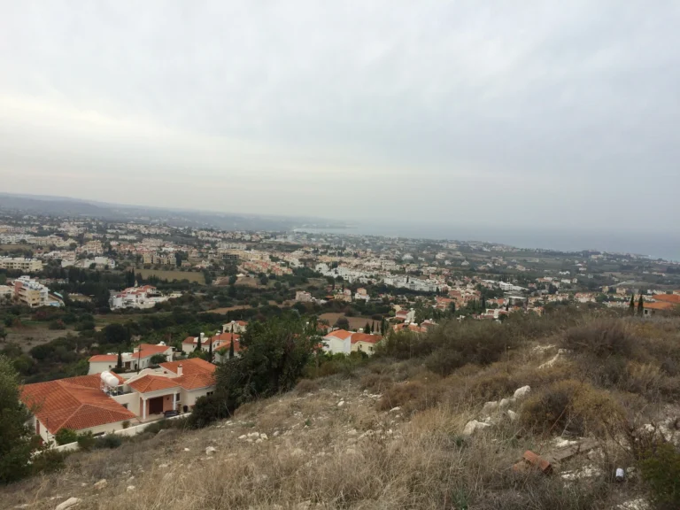 A large piece of land 6294 square meters next to Konia village, Paphos.The building ratio is 0.6% and the coverage factor is 0.35%Next to the land there are developments with houses and small villas.Around the property there is also an extremely beautiful natural environment. There is partial view to the sea.There is a house which is included of 320 square meters – concludes of three bedrooms, kitchen,and two bathroom on the first floor, ground floor space for a shop and basement space for three parking lots.Part of the field is adjacent to the road to Konia village.