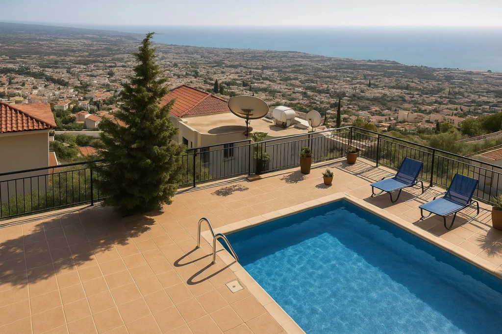 This luxury 6-bedroom villa in the hills of Peyia offers stunning panoramic sea views across the Paphos coastline. Designed for privacy and comfort, the villa combines modern architecture, high-quality finishes, and spacious living areas.
