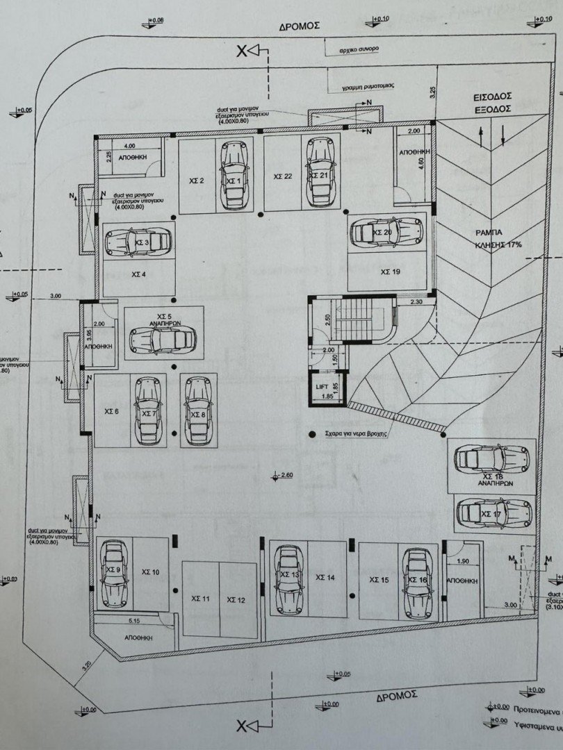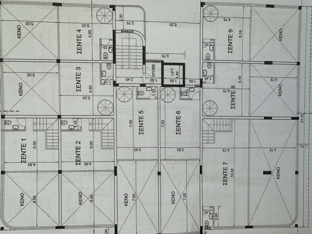 Υπάρχουν ήδη έτοιμα αδειοδοτημένα σχέδια για υπόγειο χώρο πάρκινγκ, καταστήματα στο ισόγειο και διαμερίσματα στους ορόφους.Ασφαλτωμενος δρόμος περιτριγυρίζει τις τρεις πλευρές του ενιαιου οικοπέδου.