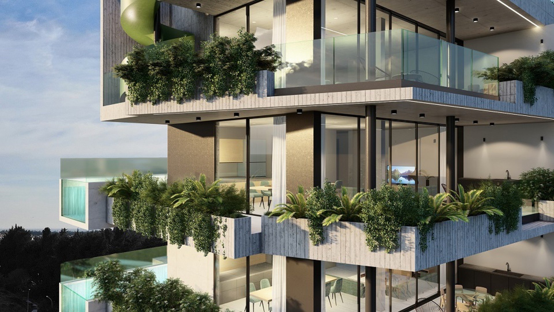 The expertly laid out 3 bedroom apartment optimize the living spaces and offer a wide open-plan living room and kitchen.Large sliding windows open up to spacious verandas that surround the living area. The external spaces are designed to enhance well-being. Peripheral planters with rich foliage surround the dwellings in green, clear the air, and cool down the building.Individual swimming pools are provided for each unit, and give the project a stand-out appearance!