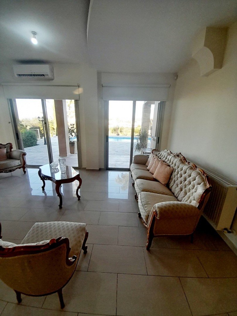 Beautiful 4 bedroom 3 bathroom furnished house located in the village of Anarita, just 15 min from Paphos center.This detached house of 300 square meters is constructed on a huge plot of land 4 737 square meters and distanced from other houses in the neighborhood. The garden is mature with variety of fruit trees and beautiful landscape. The sea view from the house itself, the swimming pool and the barbecue area is breathtaking.The house consists of 4 bedrooms, 3 bathrooms, 2 en-suite bathrooms and a guest WCThe living room, the reception rooms, the dining room, the main kitchen, the extra kitchen and 1 of the bedrooms +WC are located on the ground floor.The other 3 rooms, one of which is master en-suite with walk in wardrobe, are located on the 1st floor.The property benefits from fully equipped kitchen, fire place, storage space, extra kitchenette, security alarm, A/C, central heating, fly screens, double glazing, extra parking spaces, pergola, patio, mature garden If you are looking for tranquility, beautiful sea views and sunsets, very well equipped house, huge sized plot and far from neighbours, but not isolated, you can contact us for viewings.