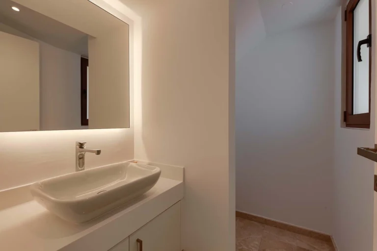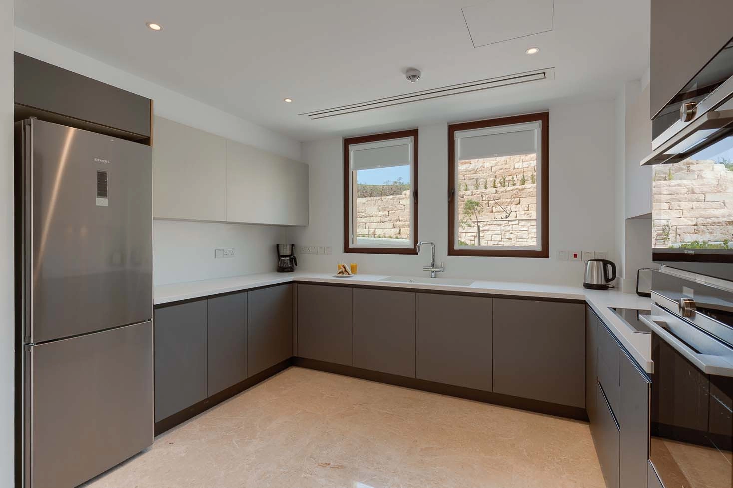 The villa features a high-quality Italian-style kitchen with corian worktops and integrated appliances. Shower rooms are finished in crema tea marble, and the home benefits from marble or parquet flooring throughout. All rooms are equipped with concealed air conditioning and underfloor heating for year-round comfort.