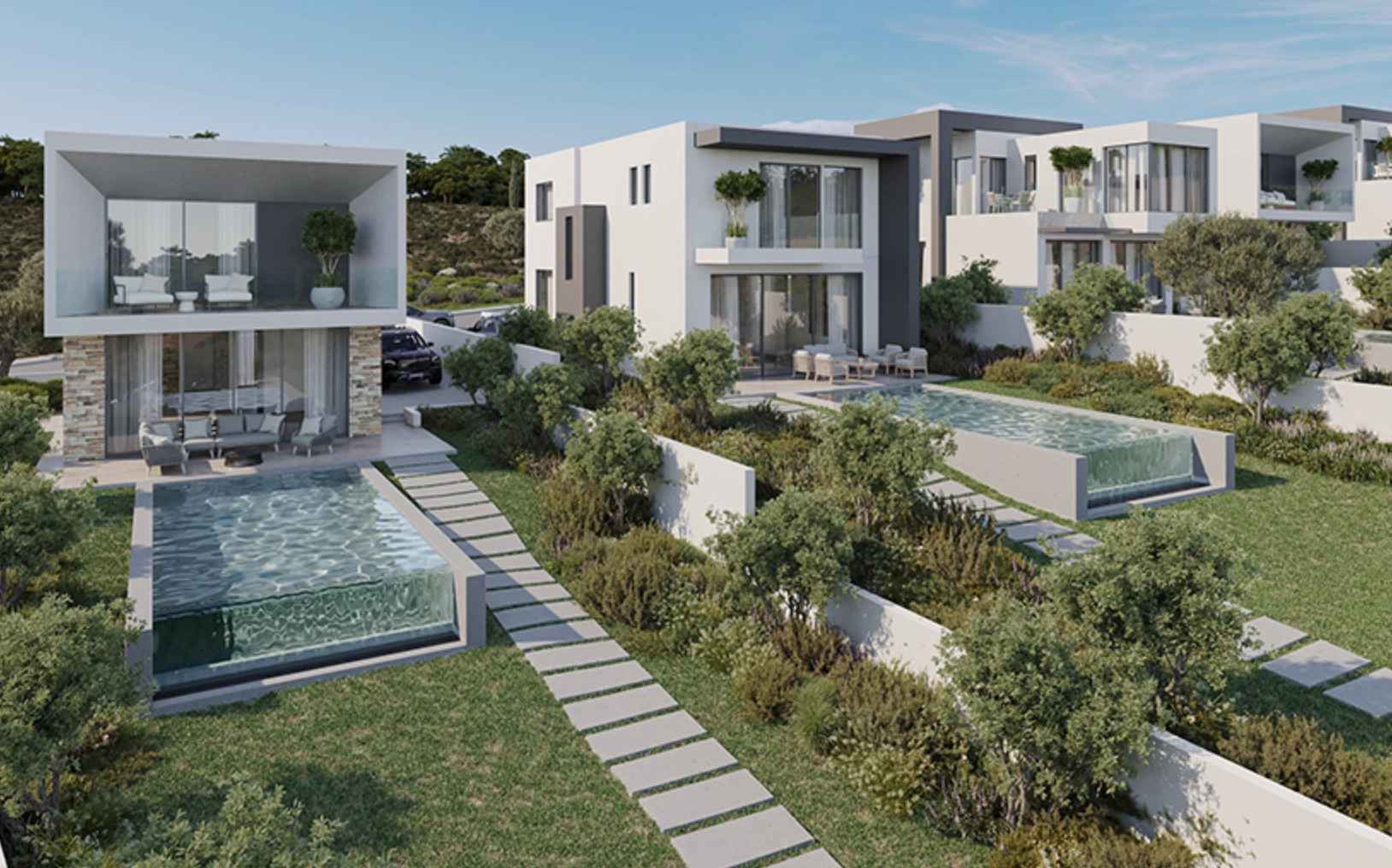 The modern architectural approach blends the project seamlessly with the natural environment, creating spacious and efficient interior areas. The location is exceptional, providing unobstructed views of Pafos and the Mediterranean Sea from every single house. The village center is only 2 minutes away, offering convenience without compromising tranquility.