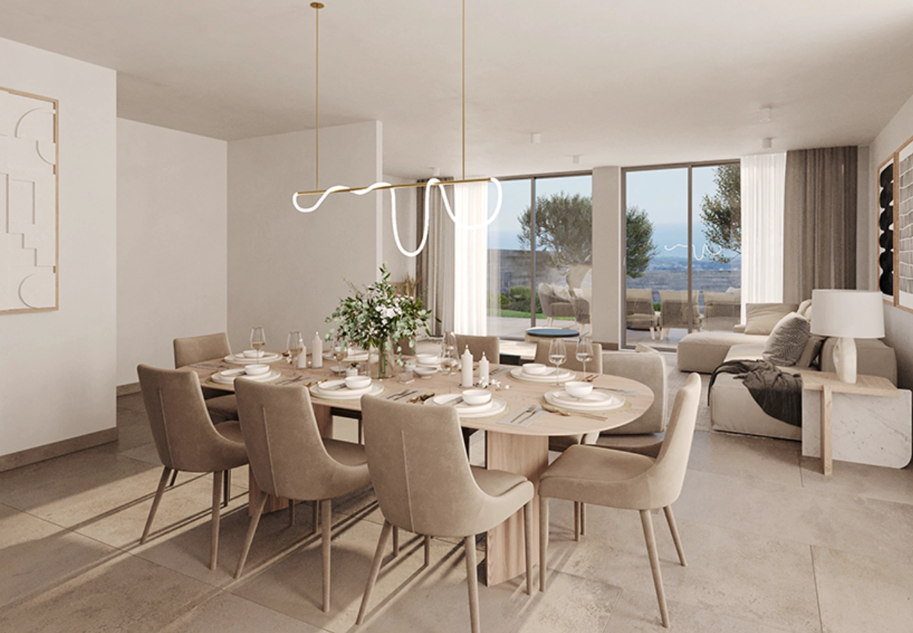 The modern architectural approach blends the project seamlessly with the natural environment, creating spacious and efficient interior areas. The location is exceptional, providing unobstructed views of Pafos and the Mediterranean Sea from every single house. The village center is only 2 minutes away, offering convenience without compromising tranquility.