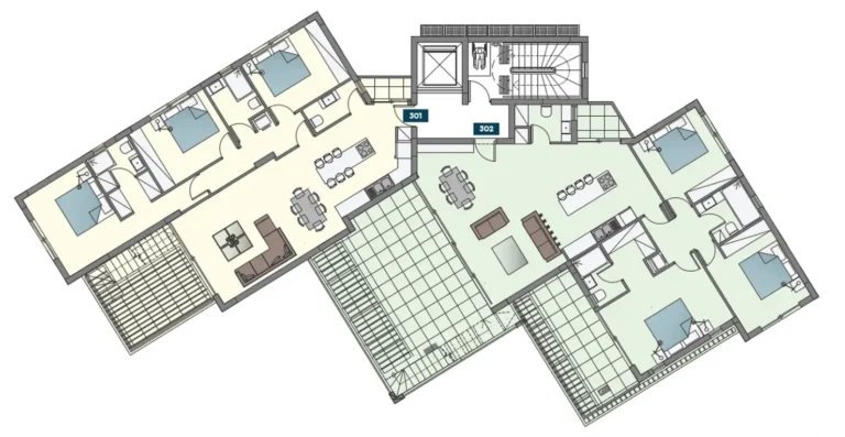 The 4 bedroom penthouse offers expansive, refined living spaces designed for families and individuals who appreciate comfort, quality, and uninterrupted sea views. With panoramic glazing framing Limassol’s coastline, the open-plan living and dining area becomes the heart of the home — bright, inviting, and ideal for both daily living and hosting guests.