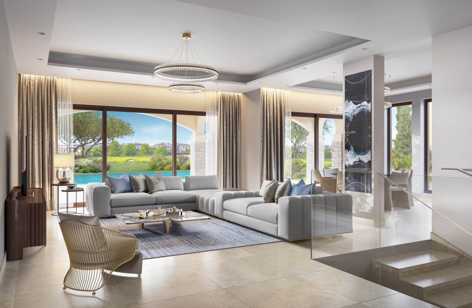 These luxurious detached villas are designed and built to exceed your expectations in every way and offer Mediterranean living at its zenith. Impeccable attention to detail is evident everywhere with the highest quality Italian-Style design kitchen units, lavish Marble bathrooms and marble or parquet flooring throughout. An effortless lifestyle is assured with provisions for under floor heating, concealed dual air conditioning/heating, home automation system provisions offering the option of having additional technology pre-installed to meet the owner’s requirements and discreet security system. The villas offer a versatile basement area which may be used as an additional bedroom, playroom, gym, TV room, etc.