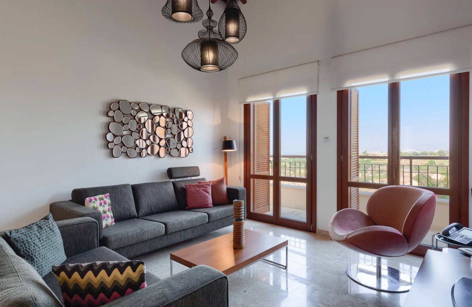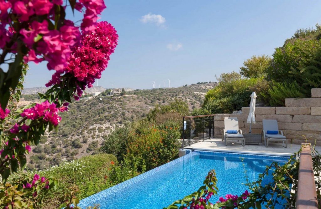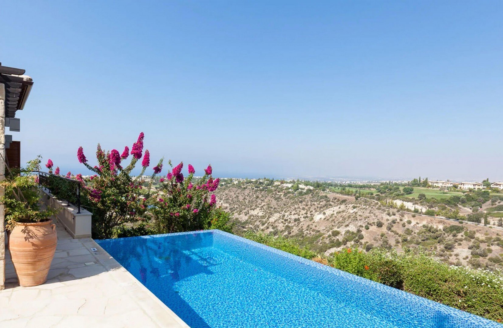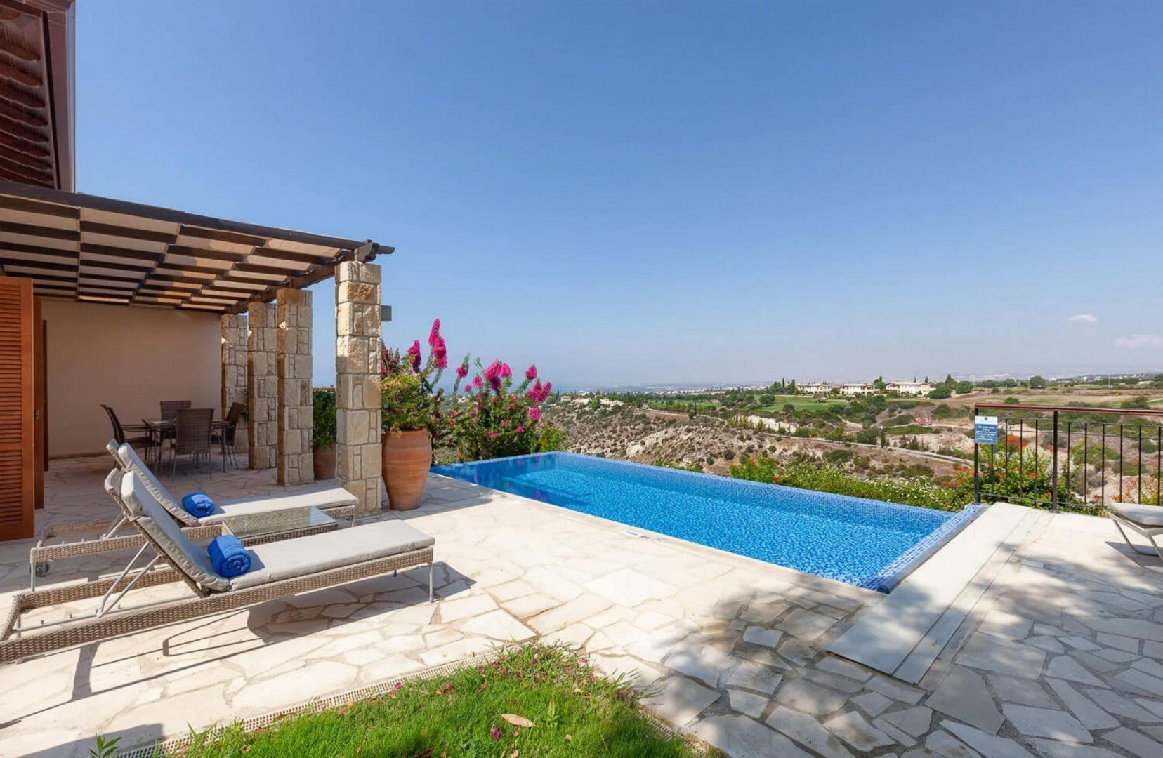 This lovely 2-bedroom cottage with stunning views of the Aphrodite Hills Golf Resort, the sea and the mountains is located on a large plot on one of the highest points on the Resort.