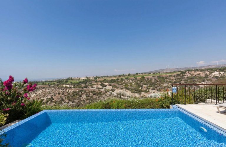 This lovely 2-bedroom cottage with stunning views of the Aphrodite Hills Golf Resort, the sea and the mountains is located on a large plot on one of the highest points on the Resort.
