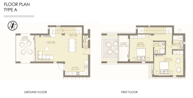 The property is arranged on two levels with the master bedroom, living area and spacious kitchen located on the ground floor and the second bedroom with its own private lawn – on the lower level.