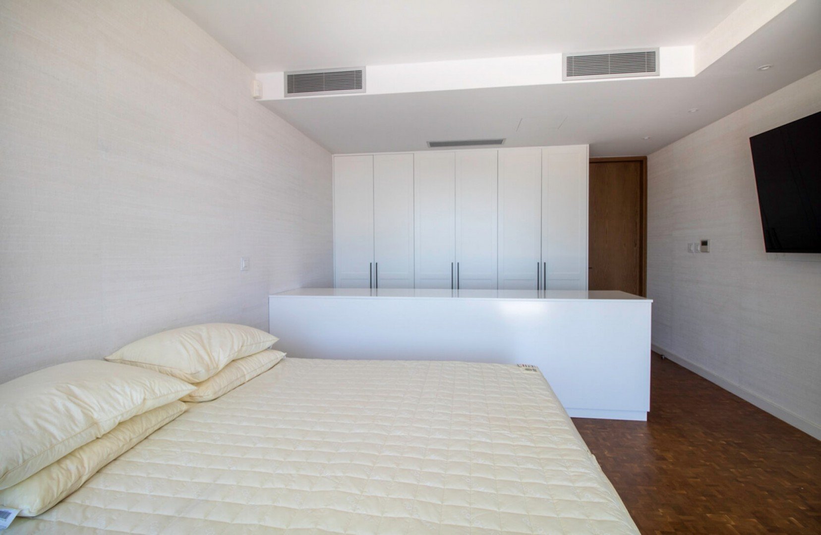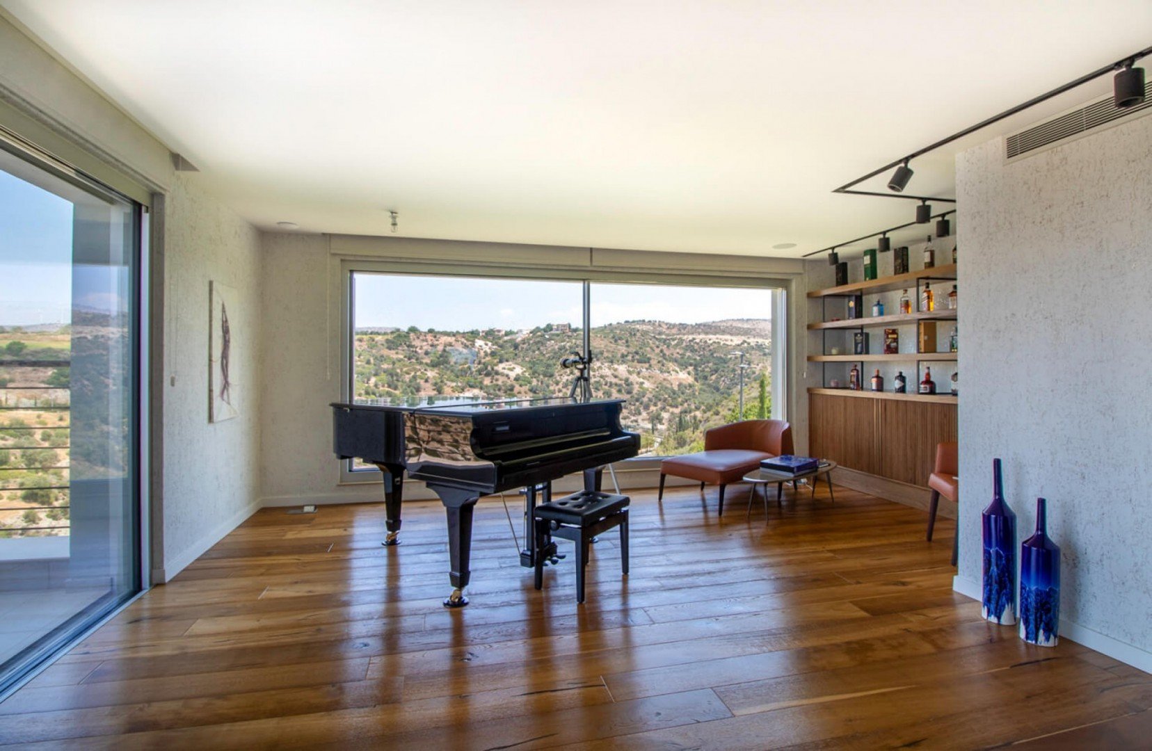 Crossing over the perfectly designed timbered bridge through the main entrance of this spectacular villa, one will notice the expansive open plan living, dining and kitchen areas of the property. A modern free-standing fireplace is featured centrally with a unique kitchen design supplemented with high end brand fixtures and fittings. Large terraces located off the living and dining areas of the villa provide breathless views and complete serenity. The villa offers concealed air conditioning.