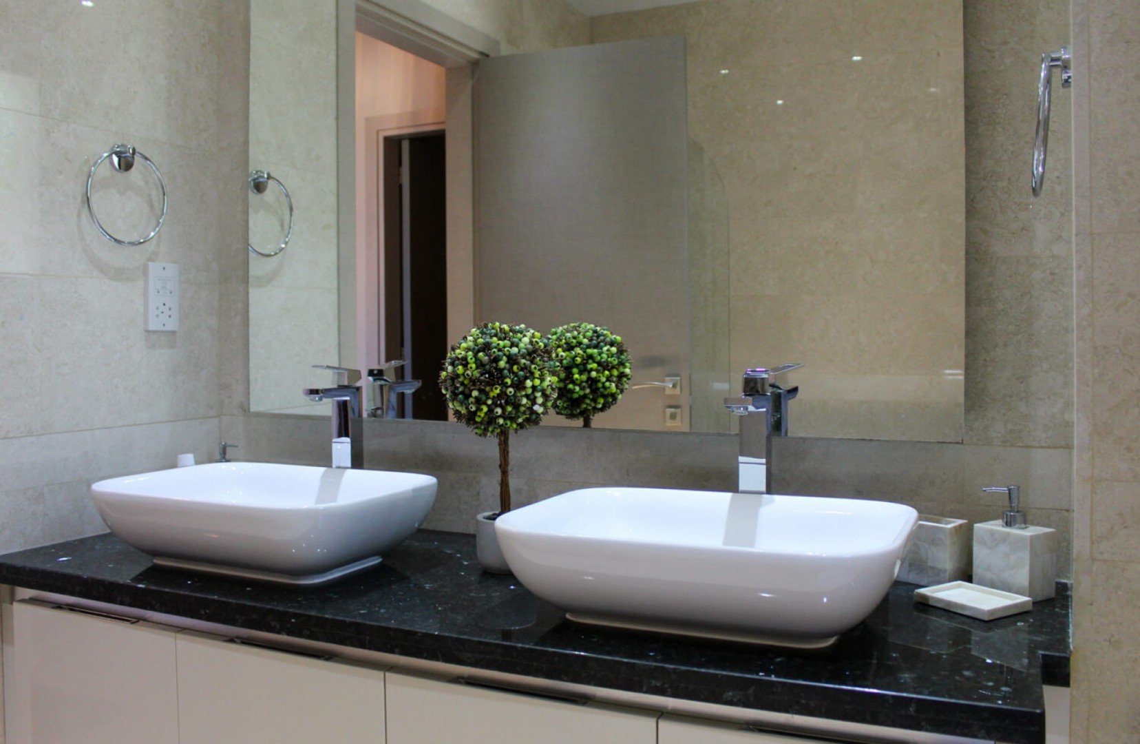Upon entering the Villa’s large driveway and a few steps walk down the stone steps, the entrance to this beautiful villa awaits you. Upon entering the Villa, one will notice immediately the immense Grand Lounge, Dining and Kitchen areas. Finished to the highest standard in terms of specifications, furnishings, accessories and brand appliances, this beautiful villa will exceed one’s expectations. Two wood burning fireplaces can also be located on the ground floor area adding a special touch to those fine Romantic evenings.