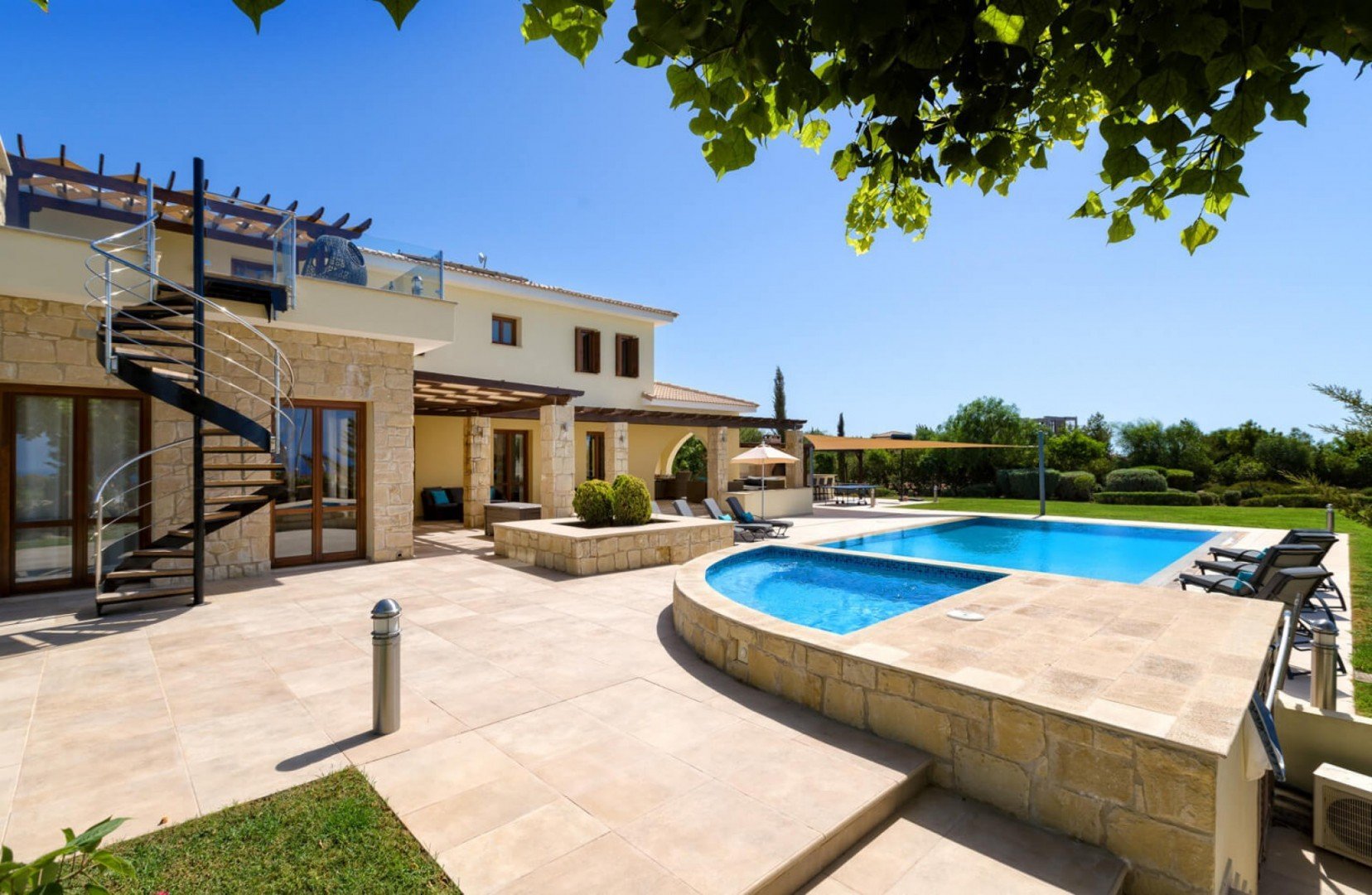 Stepping out of the living and dining rooms through the wonderful French doors, one will notice the gardens below that reflect traditional Cypriot landscaping, a very large 12m x 6m swimming pool with an overflow feature and a very spacious BBQ area to accommodate large gatherings when socializing.