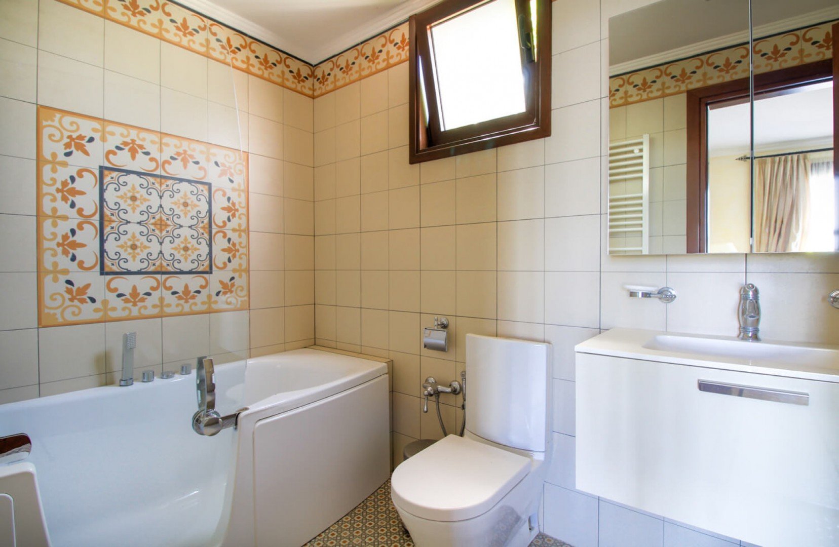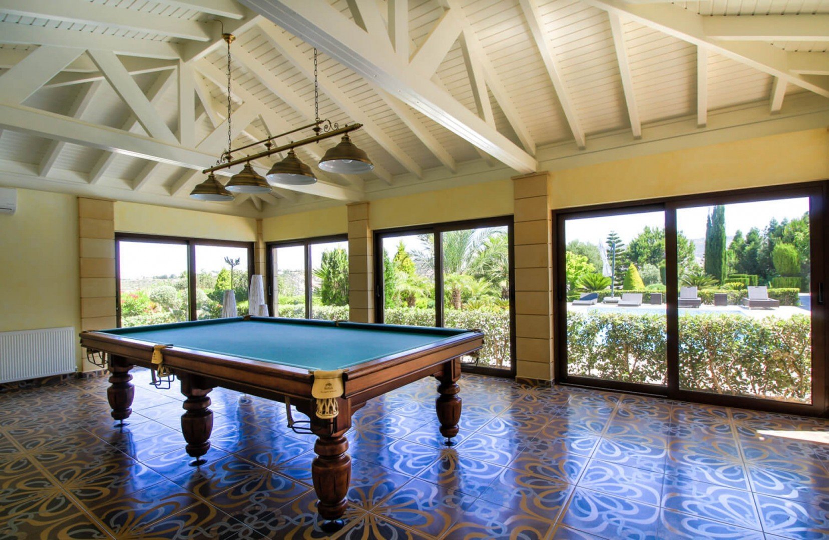 Upon exiting the villa, one will notice a detached entertainment room to the left of the large swimming pool, offering a full size billiards table and plenty space for one to include a bar for those who want to socialise with the full experience of a sports bar. To the right of the swimming pool on the very edge of the garden, one may enjoy complete serenity with their own private jacuzzi, with amazing views over the golf course below and towards the Blue Mediterranean Sea.