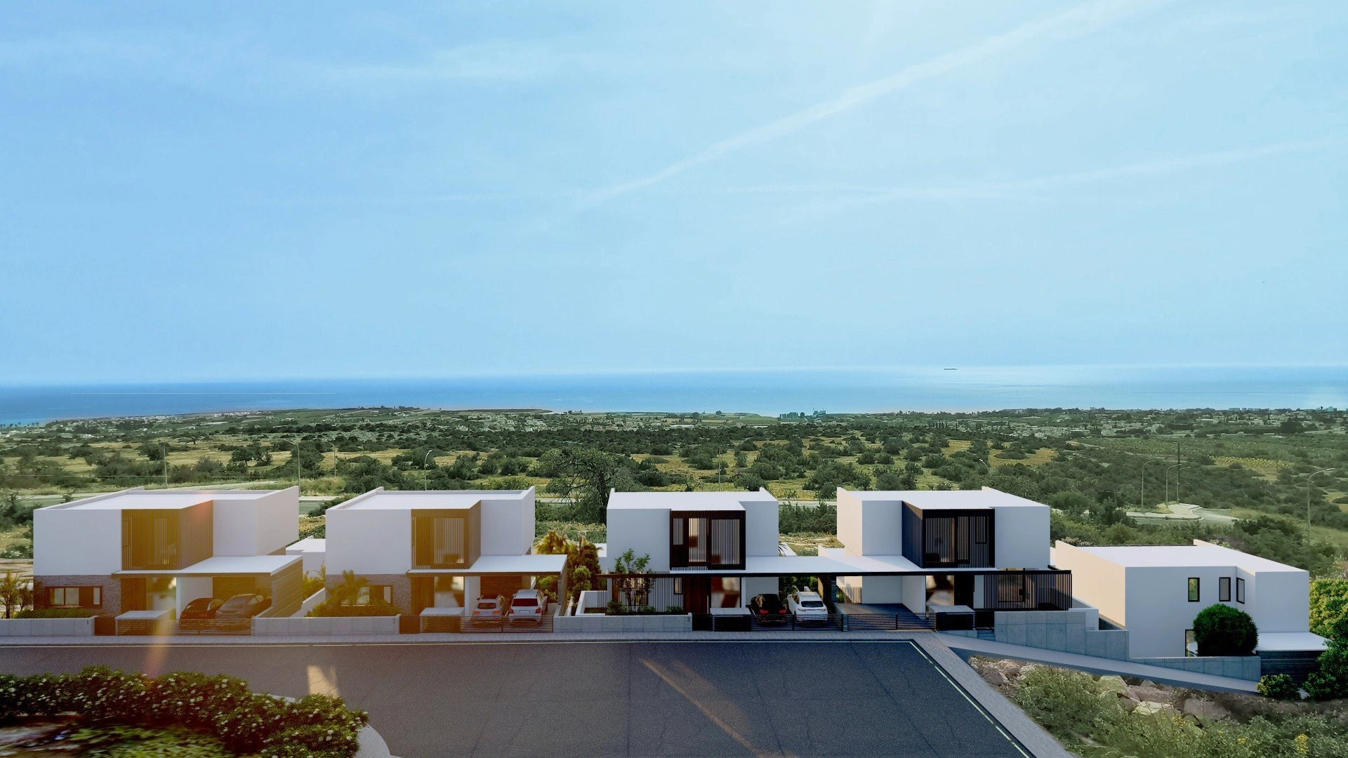 For sale (off-plan) 3 bedroom modern Villa in Pegeia, Paphos.It is located on a hilltop offering unobstructed panoramic sea views and it has easy access to the local amenities and facilities of the surrounding area. Paphos center is reachable within 20 minutes drive and 35 minutes away from Paphos international airport.The property consists 3 bedrooms, 2 bathroom, 1 en-suite bathroom in master bedroom, guest wc, open plan living/kitchen area, private pool, garden, uncovered parking.