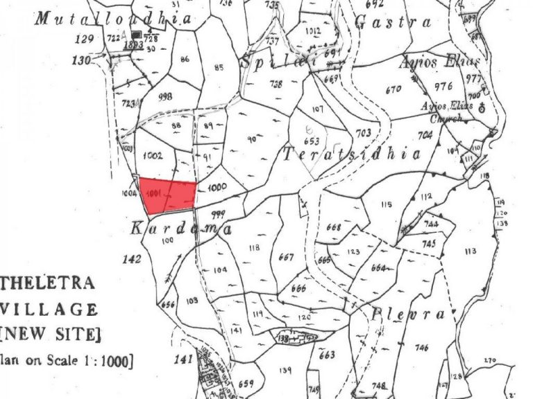 Residential field in Theletra community, in Paphos District. It is situated at a distance approximately 300 meters north from the community’s center and approximately 1.6 kilometers west from the connection road Giolou – Stroumpi.