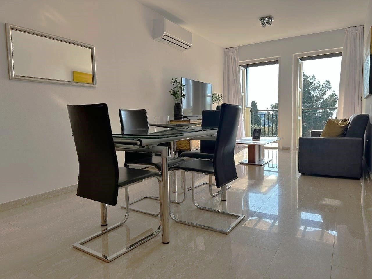Living/Dining Area: Open plan, leads to a spacious veranda with Mediterranean Sea views