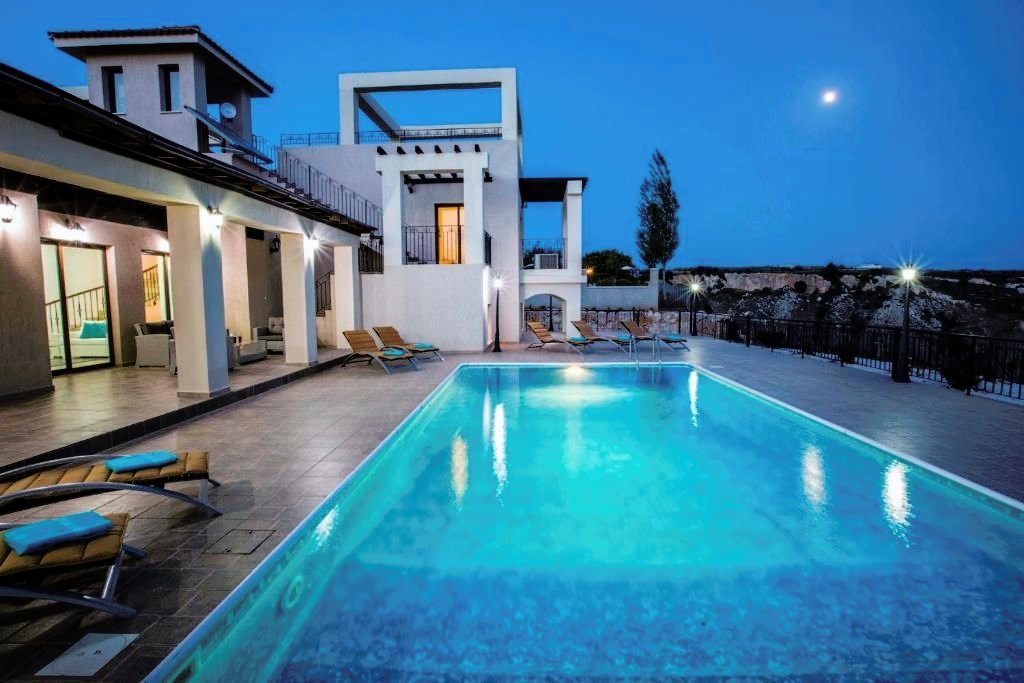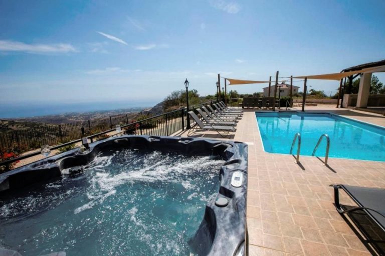Discover the ultimate in Luxury living with a nestled in the peaceful hills of Peyia – Kathikas, offering breathtaking views of Paphos. This prestigious villa features six spacious bedrooms, including five with private bathrooms and an extra guest WC, set on an expansive 3765m2 land.