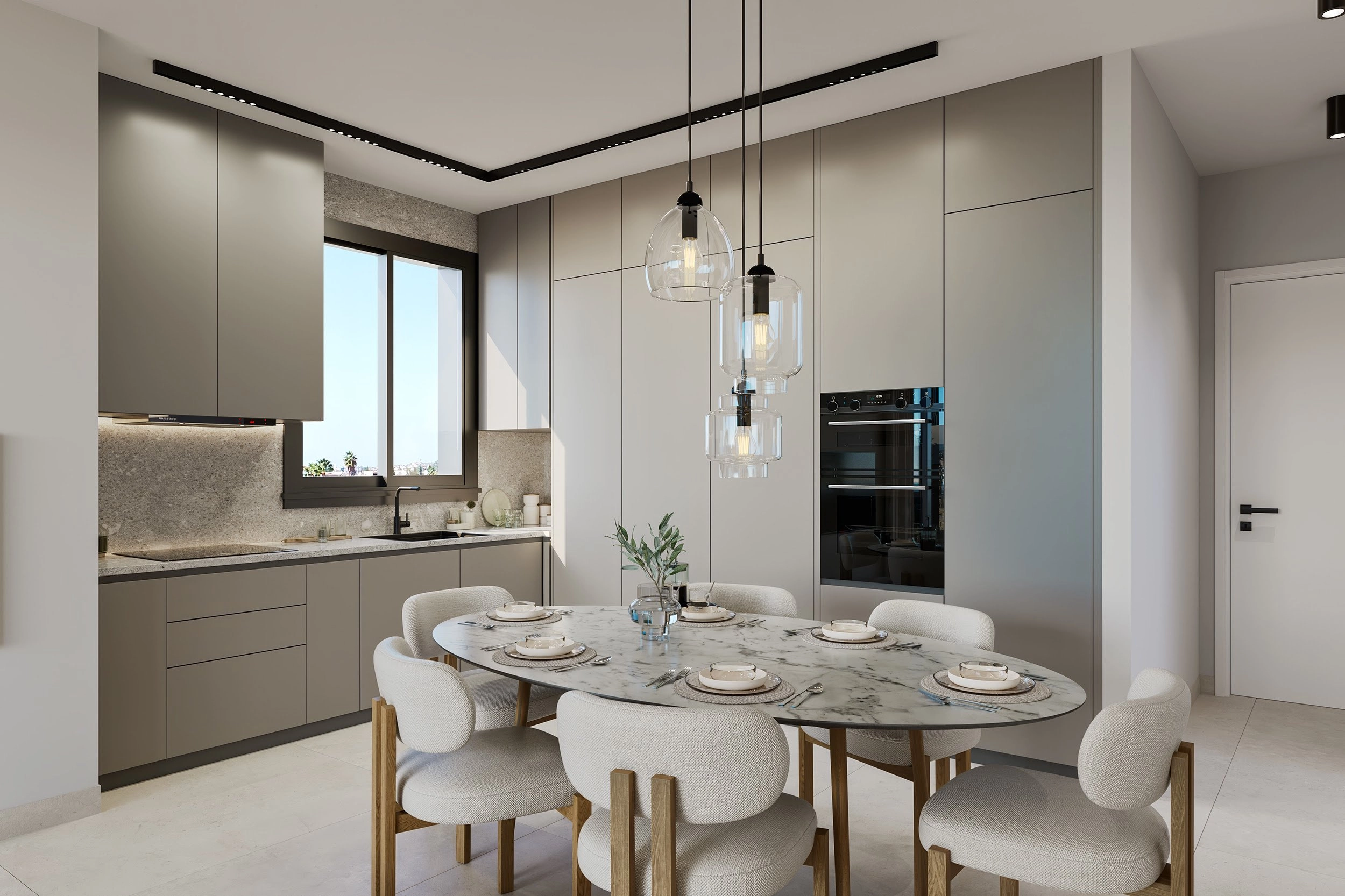 The large open-plan living and dining area creates a bright and flowing interior space perfect for family living or hosting. High-quality finishes, warm tones, and carefully selected materials enhance the sense of comfort and refinement. The three bedrooms are well-sized, offering flexibility for family needs, guests, or dedicated workspace.