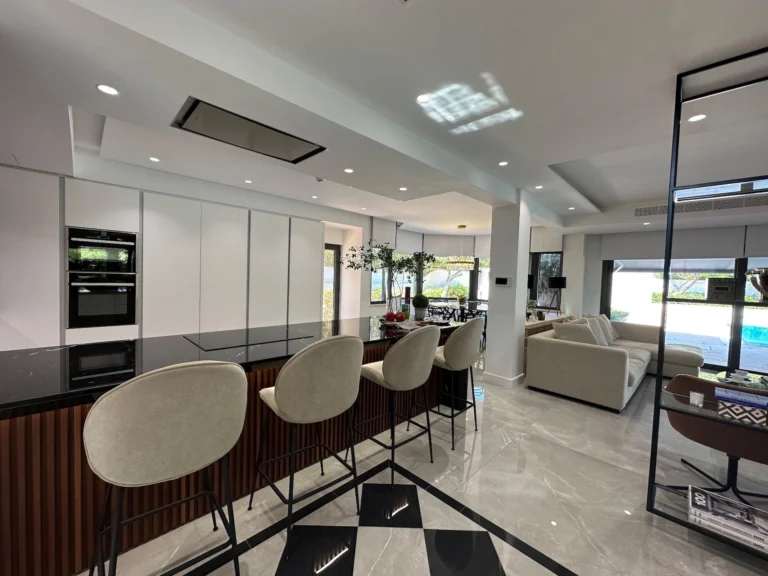 Reference ID: #SA33832Price details: €2,900,000For SALE Luxury house in Panthea , Limassol Amazing three-level house situated in a corner piece of land at Panthea area with seamless sea view near all amenities and services and easy access to the highway and the city center.This house consists of a basement, ground floor, and first floor. On the ground floor, you can find spacious areas for the kitchen, living rooms, and dining rooms. The first floor is four bedrooms (en suite) and family bathroom and the basement is a fully independent studio for the house made with all the facilities needed.At the exterior, there are covered and uncovered verandas, garden and an overflow swimming pool with salt water and a spacious covered parking space for three cars.Next to the swimming pool, there are extra three rooms where one of which is independent with shower, wc and water jet shower.This elegant house is a fully smart home with many extras, build in music system, glass break sensors, 8 cameras with night and day capabilities climate system underfloor heating system and a three level hydraulic elevator. All materials used are top quality.