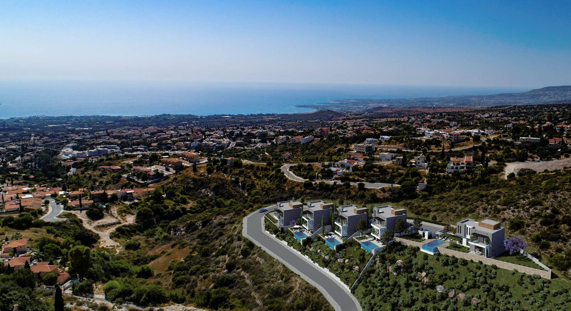 This area is considered to be the most elite suburb of Pafos and has one of the best climates in Cyprus with a cool on shore sea breeze and clean fresh mountain air.