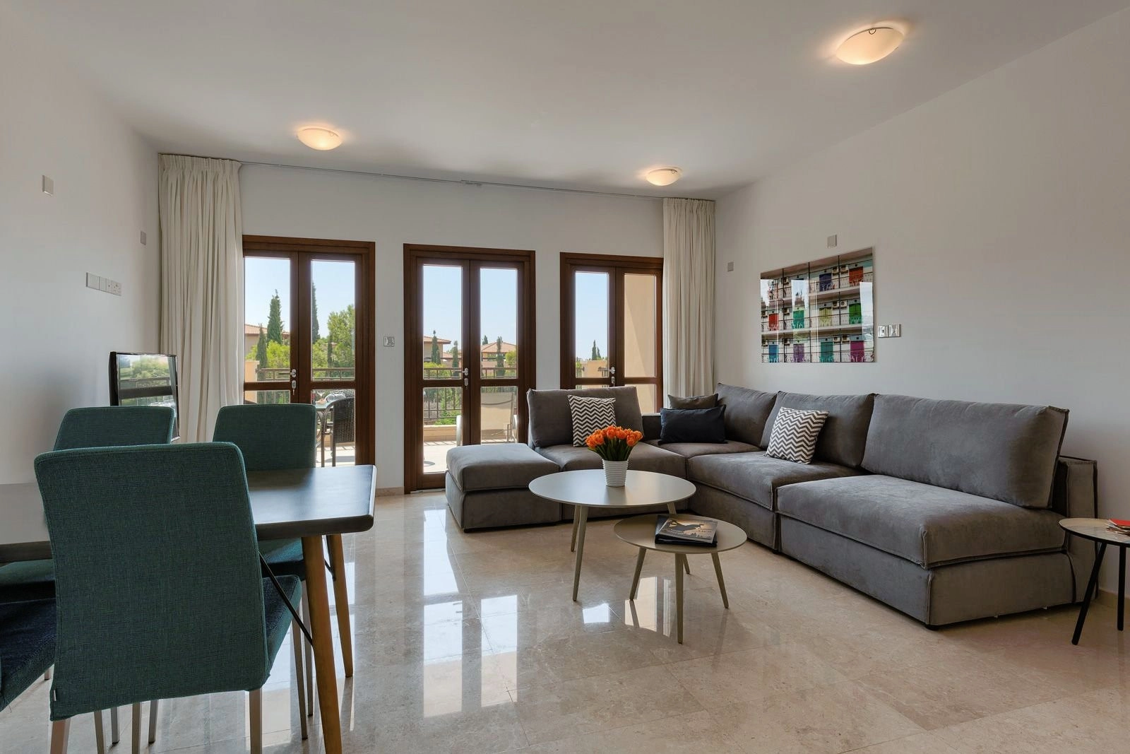 This beautifully presented two-bedroom premium apartment is situated in a sought-after area of the Aphrodite Hills Resort, offering modern design, comfort, and an effortless lifestyle. Positioned on the first floor, the home is tastefully decorated in neutral tones with vibrant accents and features high-quality fixtures and fittings throughout.