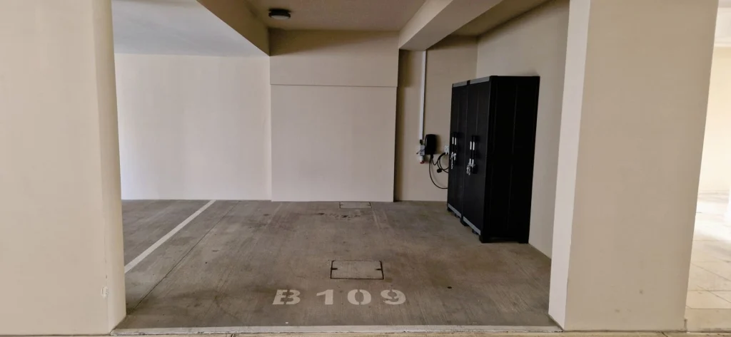 Parking spot can be reached directly by staircase from apartment
