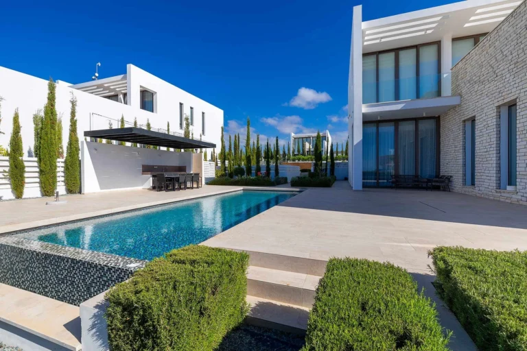 The Callisto residence is a modern ode to light. Dual aspect folding doors create a breeze-way, the open-plan spaces sweeps from the courtyard garden to the pool area, while each bedroom occupies its own private space a part giving complete privacy for each occupant. There is a living area on each floor making it ideal for families, the lower living area also leads to a stunning infinity pool area, sun deck and green lawn. This property is part of the luxury lifestyle residential resort Minthis, which offers numerous benefits, services, and world-class facilities. These include an 18-hole championship golf course with a contemporary Clubhouse, a destination wellness Spa, sports ground, hotel-style accommodation, and a lively social square featuring a bar, restaurant, cafe, and boutique stores. Residents can also enjoy the resort’s nature trails, organic garden, and playgrounds, all set within a protected Natura 2000 landscape, reflecting a commitment to sustainability and a harmonious connection with nature. Details: 4 bedrooms 4 bathrooms, 3 ensuite and 1 guest toilet 1288 square meters plot Total covered area of 300 square meters Private swimming pool Private covered parking Underfloor heating Concealed VRV system Landscaped gardens Photovoltaic panels Amenities: Clubhouse with restaurant, cafe and bar Wellness Spa 18-hole golf course Amaracus restaurant Village centre with boutique stores Sports ground with tennis academy Children’s playground Hiking and Mountain bike paths Minthis is an exclusive residential retreat perched on a tranquil hilltop within a 5 million square meter Natura 2000 protected landscape, offering a harmonious blend of modernity, tradition, and nature. inspired by the local Cypriot landscape, Minthis embraces a philosophy of holistic wellbeing, connecting residents to nature while balancing adventure and discovery with peace and tranquility. The development offers a collection of bespoke Residences, Villas, and Suites, each thoughtfully designed to capture natural light and frame extraordinary views, while harnessing the cool hillside breezes. Ranging from intimate suites to expansive residences with 2 to 5 bedrooms, these homes emphasize sustainable design and long-term value.