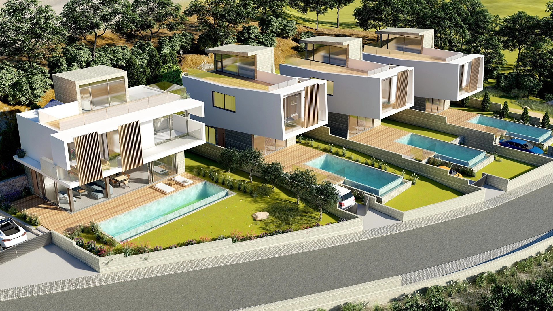 After the success of Lambda Type Residences, the essence of Kuutio Homes new project Eauzone Chloraka, is delivered by the luxurious modern space areas, the luscious nature and the backdrop views of the coast and the blue colour palette of the sea.