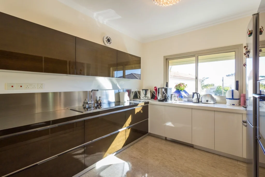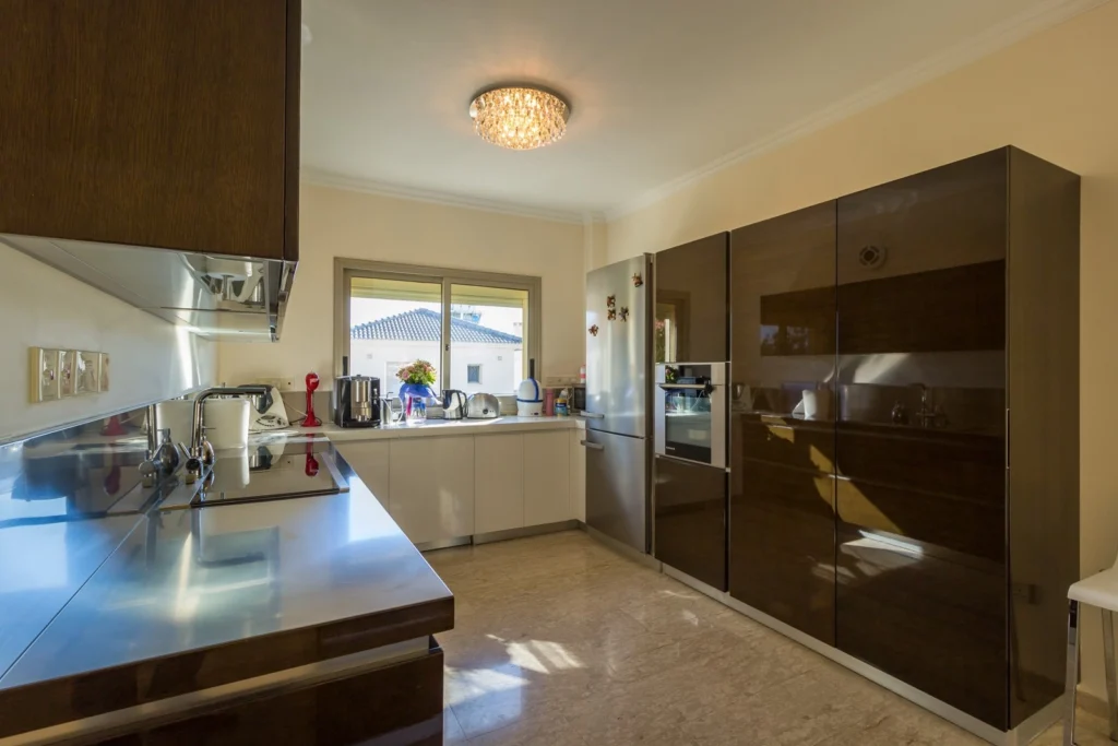 This newly built four-bedroom villa is situated in the Agios Athanasios area of Limassol. It boasts a separate guest area, a swimming pool, three bathrooms, a utility room, a laundry area, and central heating. The construction utilized high-quality building materials, and the house is well-insulated. Within walking distance, all necessary infrastructure is conveniently accessible. The covered area of the villa spans 340 square meters, nestled on a 350-square-meter plot of land. Title deeds are available, ensuring a smooth transaction process.