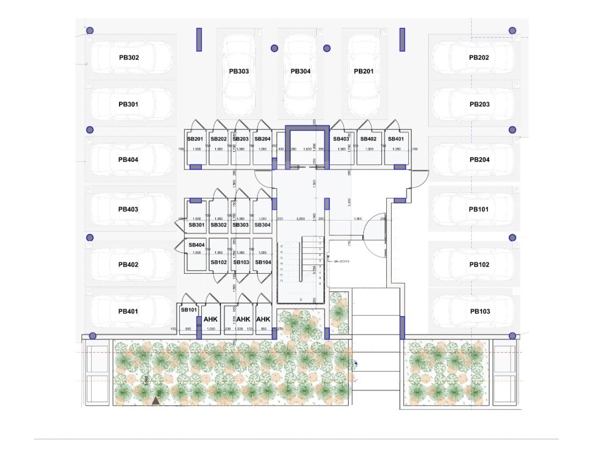 In this amazing new project you will find the quality of life you were searching for. In an immense plot tranquility safety and luxury are guaranteed. Consisting of 3 residential blocks of four floors each of one or two bedrooms and 7 penthouses a safe and covered parking area and storage rooms you will have all the necessities and more. In a space of almost 8.000 sqm you will be living in a Green environment with respect to nature. The project has provisions for solar panels all blocks are equipped with chargers for electric cars and also tenants can enjoy an outdoor gym. Its location is ideal since it is close to the city center but at the same time you are isolated in a modernly designed garden in a quiet area with easy access to all main roads leading to the center or the other cities of the island.