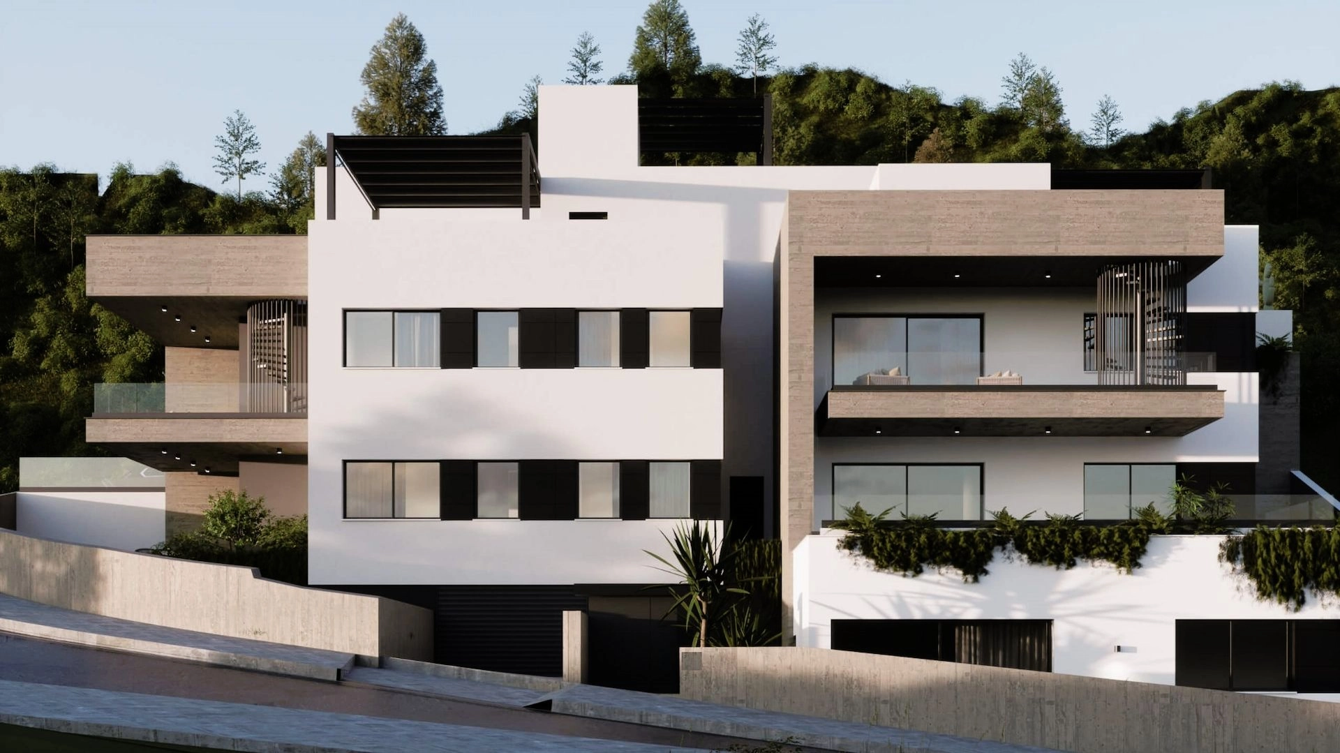 We are happy to present you the brand new housing complex that comprises of 7 superb housing units at a supreme location. All units are 2 bedroom, each meticulously designed to maximise com-fort, efficiency and looks. The living areas are designed as an open-plan space, connected to large covered balconies and pri-vate uncovered terraces and gardens that offer the perfect spot to take in the amazing views of the sea and the mountains on offer. One of the building’s standout features is its energy efficiency. It is designed to the highest standards and is rated as an “A+” class building, with the use of solar panels, insulation throughout, electric car chargers provisions, energy-efficient appliances, and other sustainable features that help to mini-mize the environmental impact and lower energy costs for residents.