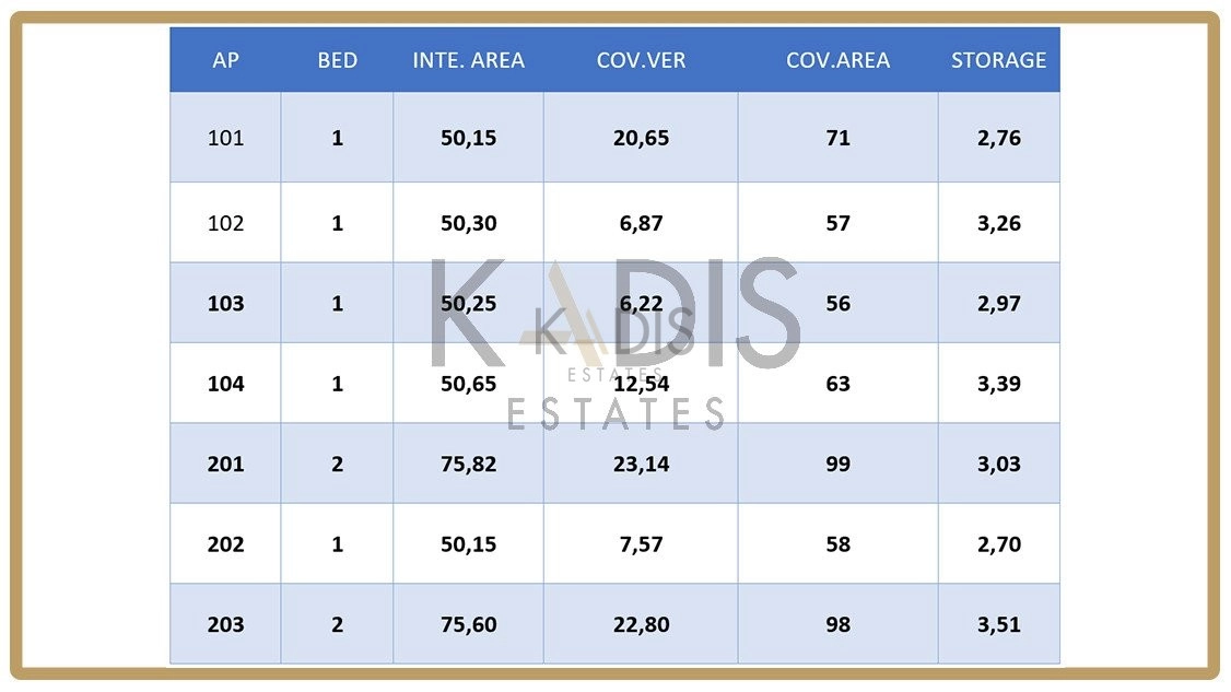 It is a small 2 story apartment building and consistis of 7 Luxury Apartments (two, 2 beds and five, 1 beds). Each apartment has its own parking space and storage.