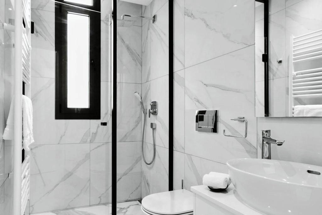 In the bathrooms and en-suites, additions like heated feature walls enhance the elegant marble floors and walls with maximum comfort.