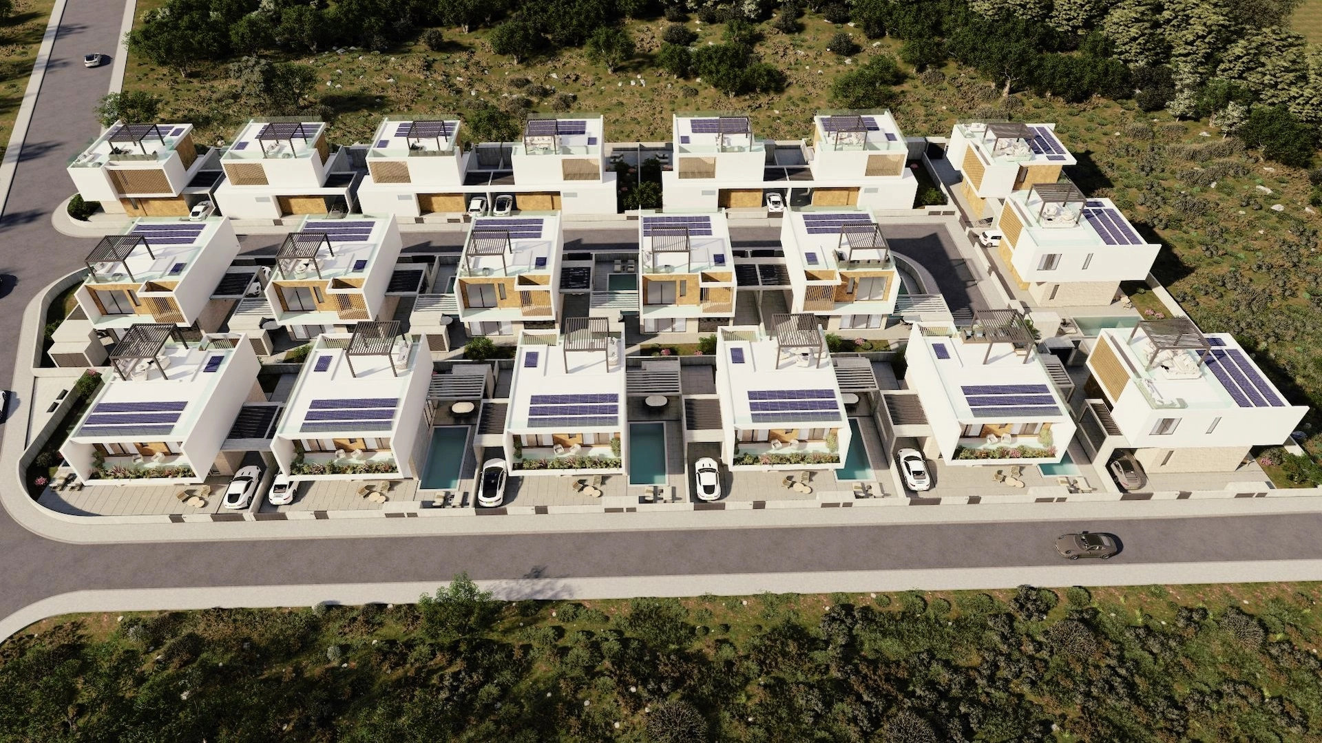 Each villa, situated on a plot ranging between 300m2 and 370m2 offers the option to incorporate a private swimming pool, further enhancing the allure of the property.
